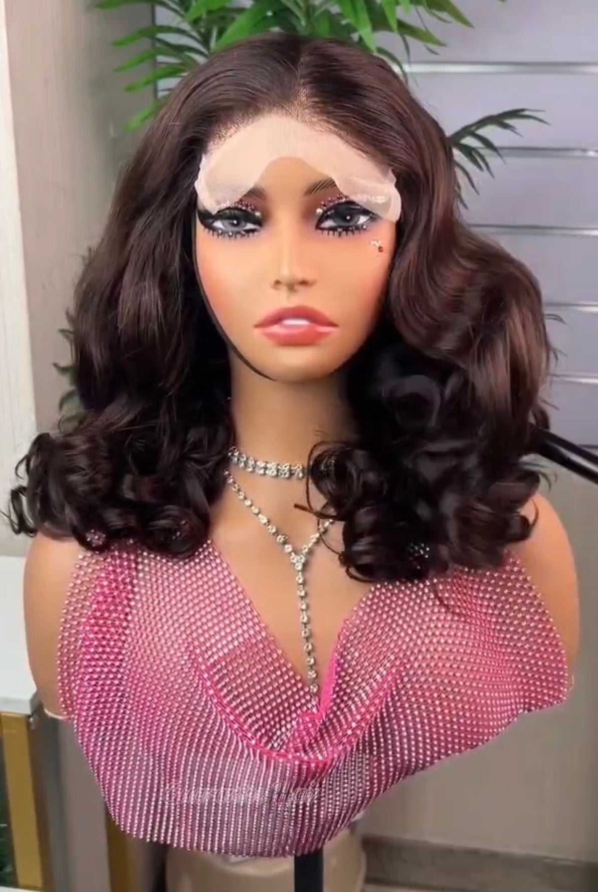 Je vous présente la perruque Loose Bouncy 5x5 100% cheveux humain prêt à porter, enfiler votre perruque en quelques secondes et vaquer à vos occupations taille 24.