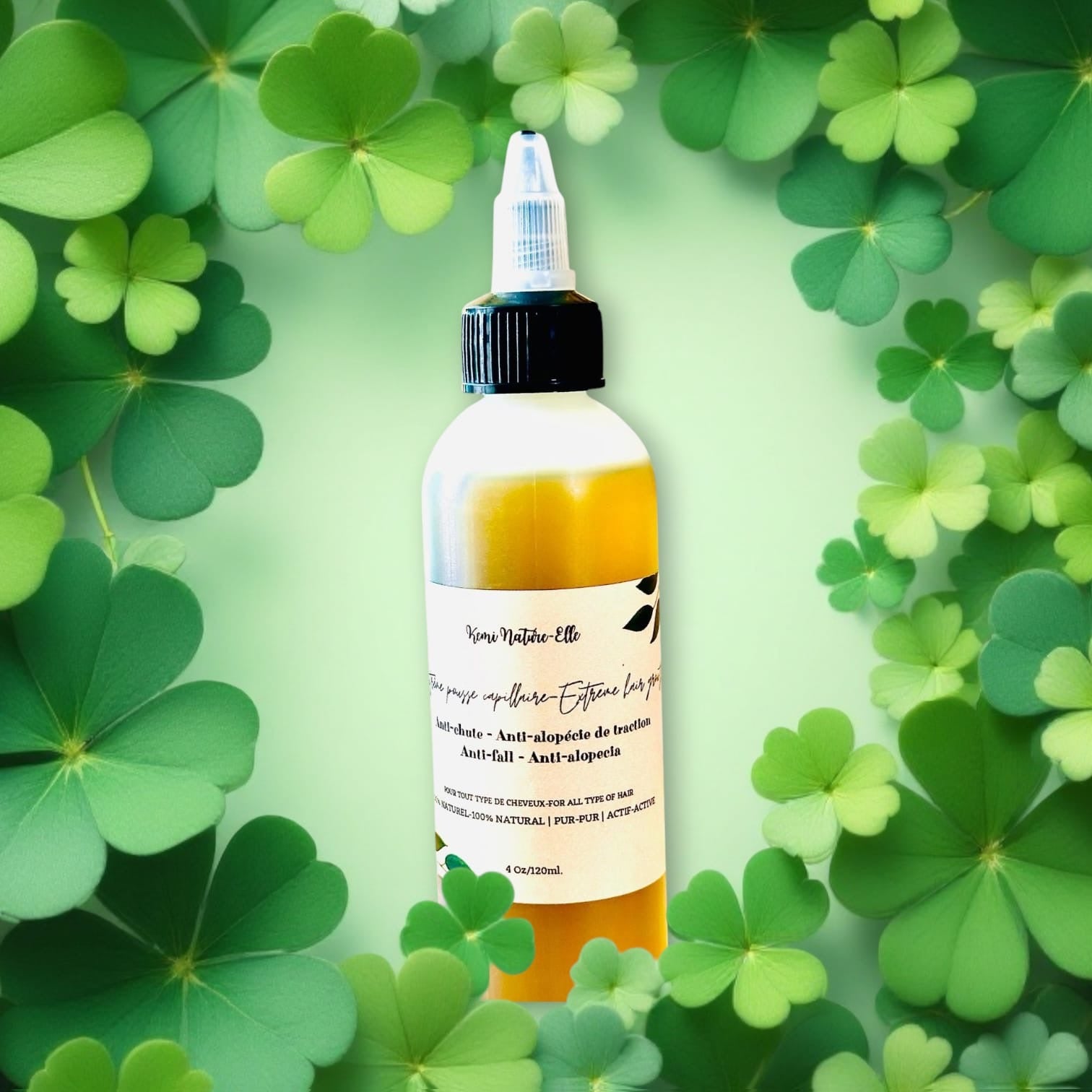 Cette huile sert à booster la pousse des cheveux et éliminer l’alopécie de traction. Préparée avec des produits 100% naturels. Voici les ingrédients: huile d’olive,huile de coco, huile d’avocat, feuilles d’hibiscus, feuilles de moringa, fenugrec, romarin, clou de girofles, feuilles de menthe poivrée, neem.